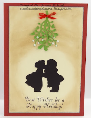 The mistletoe and Mr. and Mrs. Claus are metal dies by My Treasured Kutz called “Meet Me Under The Mistletoe” and “I Saw Mommy Kissing Santa Claus”. I cut both dies using my Sizzix Big Shot and Michaels Recollections Cardstock.